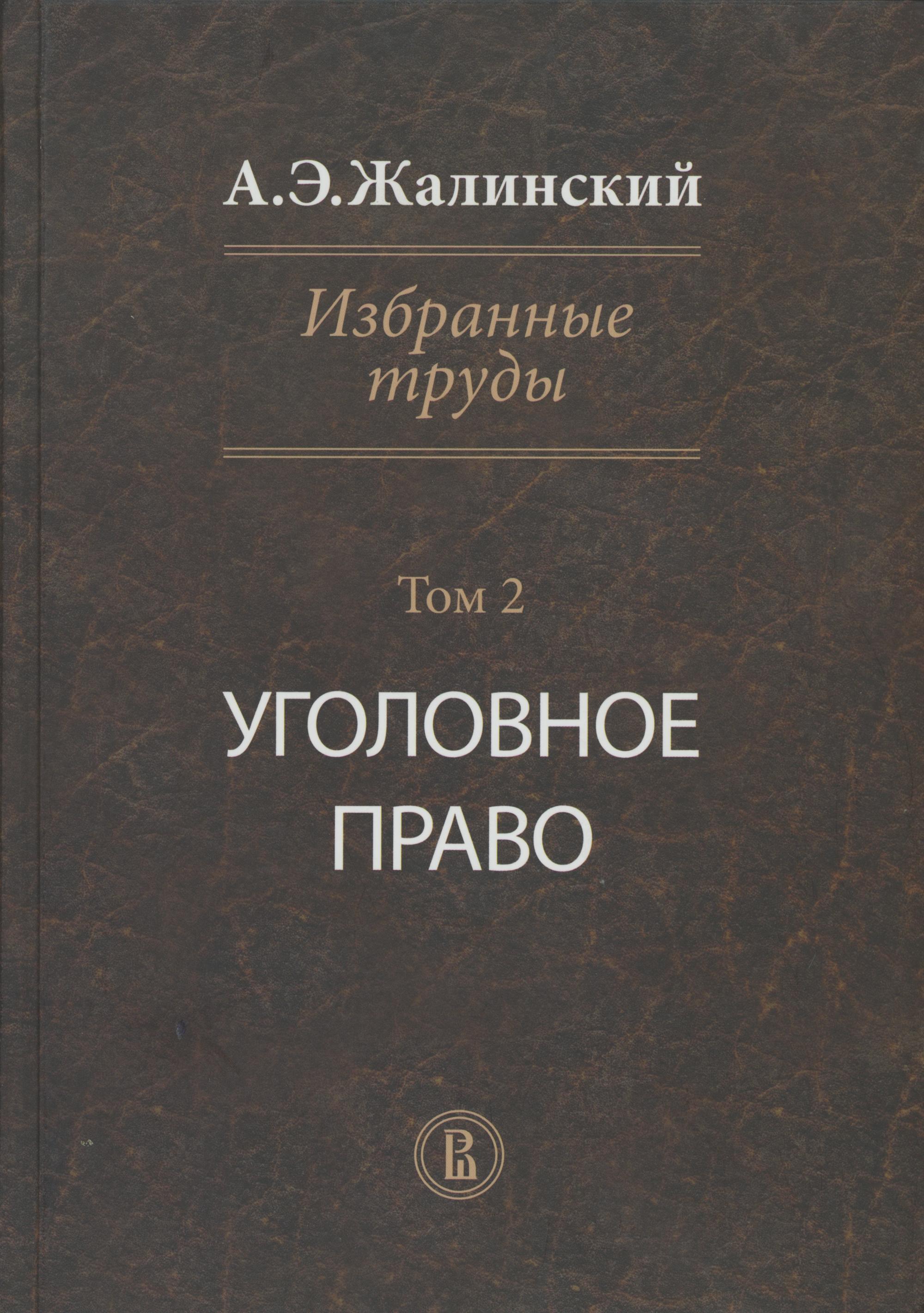 Опубликован второй том избранных трудов известного учёного: Жалинский, А. Э. Избранные труды : в 4 т. Т. 2. Уголовное право / сост. К. А. Барышева, О. Л. Дубовик, И. И. Нагорная, А. А. Попов; отв. ред. О. Л. Дубовик ; Нац. исслед. ун-т «Высшая школа экономики». – М. : Изд. дом Высшей школы экономики, 2015. 592 с.