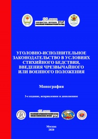 Уголовно-исполнительное законодательство в условиях стихийного бедствия, введения чрезвычайного или военного положения: монография / под общ. ред. А. А. Крымова; под науч. ред. А. П. Скибы. 3-е изд. М., 2020