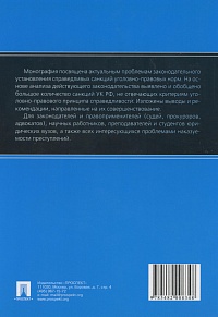 В аннотации к изданию отмечается, что монография посвящена актуальным проблемам законодательного установления справедливых санкций уголовно-правовых норм. На основе анализа действующего законодательства выявлено и обобщено большое количество санкций УК РФ, не отвечающих критериям уголовно-правового принципа справедливости. Изложены выводы и рекомендации, направленные на их совершенствование.