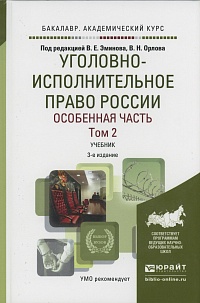 Уголовно-исполнительное право России. Особенная часть. В 2 т. Тома 1 и 2: учебник для академического бакалавриата / под ред. В. Е. Эминова, В. Н. Орлова. 3-е изд., перераб. и доп. М.: Издательство Юрайт, 2016. Серия: Бакалавр. Академический курс